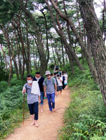 이날 행사에서는 드라마 주몽, 추노, 무신 등에서 연기파 배우로 활약한 윤동환, 매년 산티아고 순례길 1500㎞를 맨발로 걷는 ‘달형제’를 초청해 군민 20여명과 함께 요가, 명상, 맨발 걷기를 진행하고 대화의 시간을 보냈다.