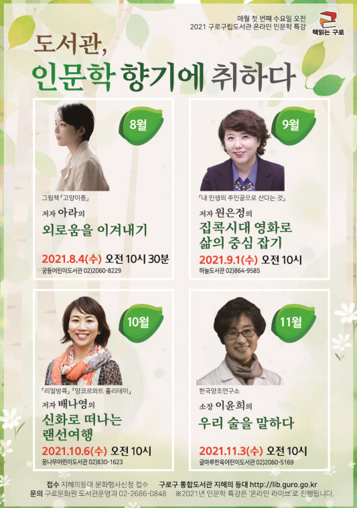(포탈뉴스) 구로문화원이 8월부터 11월까지 매달 첫째 주 수요일 ‘도서관, 인문학 향기에 취하다’ 특강을 펼친다.