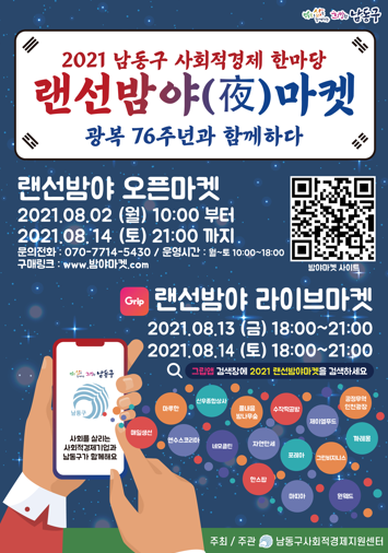 (포탈뉴스) 인천시 남동구는 오는 14일까지 ‘2021년 사회적경제한마당 랜선 밤야(夜)마켓’을 개최한다고 5일 밝혔다.
