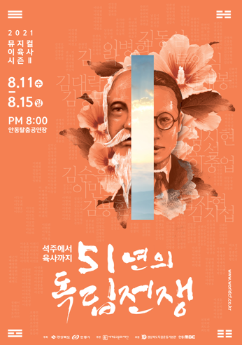 2021 뮤지컬 이육사가 대한민국 독립운동의 성지인 안동의 애국지사들을 재조명한다. 8월 11일부터 15일까지 총 5일간 매일 저녁 8시부터 안동탈춤공연장에서 '2021 뮤지컬 이육사 시즌Ⅱ '51년의 독립전쟁'-석주에서 육사까지-'가 펼쳐진다.