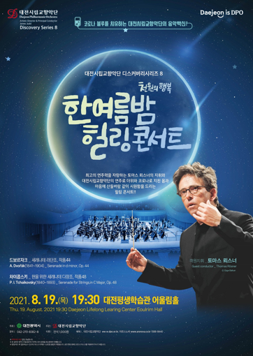 (포탈뉴스) 대전시립교향악단은 8월 19일 저녁 7시 30분, 대전평생학습관 어울림홀에서 디스커버리시리즈 8 천원의 행복 '한여름밤 힐링 콘서트'를 연주한다.