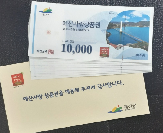 종이형상품권은 본인 신분증 및 본인 휴대폰을 지참해 농협은행 예산군지부 외 30개 판매대행점에 방문해 5000원권과 1만원권 등 두 종류를 구입할 수 있으며, 모바일(카드,QR)상품권은 지역상품권 ‘chak어플’을 다운받아 본인 인증을 거친 후 구매할 수 있다.