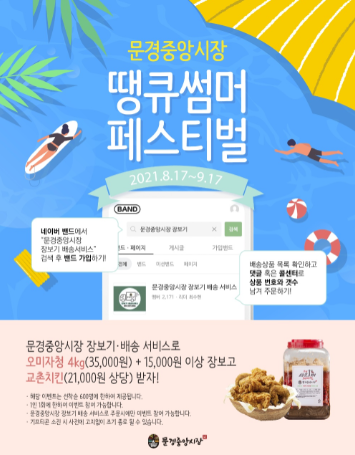 (포탈뉴스) 문경시 중앙시장은 8월17일부터 9월17일까지 선착순 600명에게 제공되는 ‘떙큐 썸머 페스티벌 5만원의 행복’비대면 배송서비스 이벤트를 실시한다.