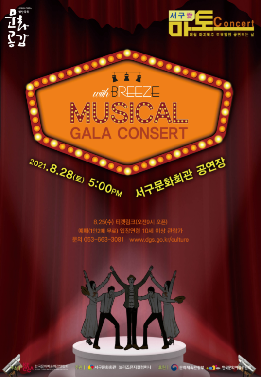 서구문화회관과 브리즈뮤지컬컴퍼니가 공동 제작하는 이번 공연은 누구나 한번쯤 들어보았을 법한 4대 뮤지컬부터, 지역에서 창작된 한국창작 뮤지컬 넘버들을 브리즈만의 색깔로 재편성하여 하나의 콘서트에서 즐길 수 있도록 준비했다.