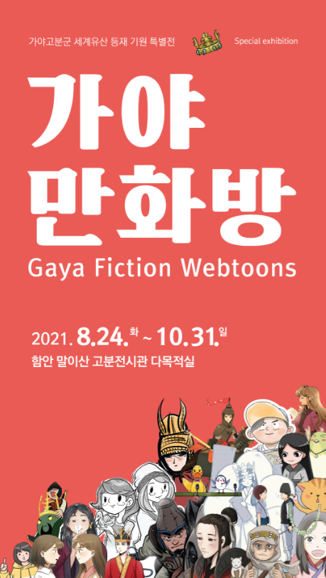 한편, 이번 ‘가야 만화방’ 전시는 코로나19 감염확산 방지를 위해 개막식을 별도로 개최하지 않으며, 관람객들은 마스크 착용 및 거리두기 등 방역수칙을 준수해야 한다. 특별전 관련 문의는 함안군 가야사담당관실로 하면 된다.