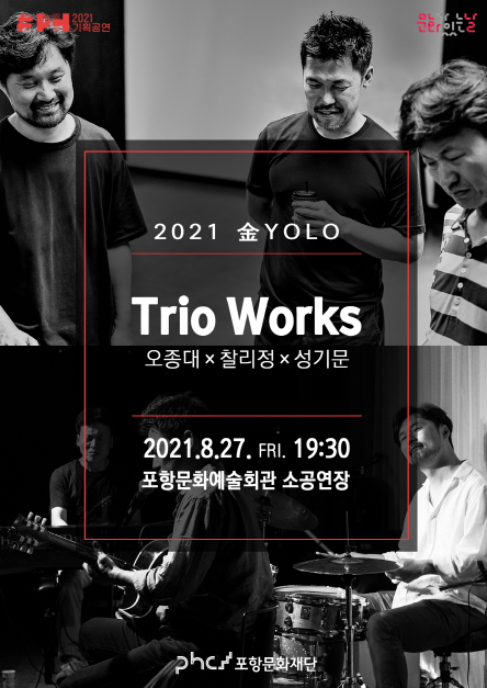 (포탈뉴스) 재단법인 포항문화재단은 오는 8월 27일 오후 7시 30분 포항문화예술회관 소공연장에서 '2021년 금욜로(金YOLO)시리즈’의 세 번째 프로그램으로 ‘Trio Works(트리오 웍스)’를 개최한다.