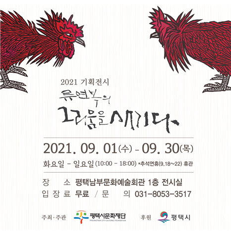 (포탈뉴스) (재)평택시문화재단은 9월 1일 수요일부터 9월 30일 목요일까지 평택남부문화예술회관 전시실에서 2021 기획전시 <류연복의 그리움을 새기다>전을 개최한다고 밝혔다.