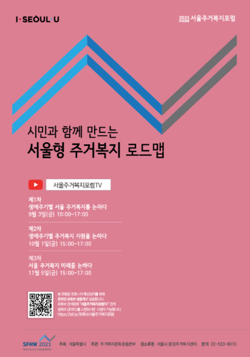 2021 서울주거복지포럼은 온-오프라인 하이브리드 포럼 방식으로 개최할 예정이며, 오는 3일 제1회 포럼은 방역단계 지침에 따라 비대면 방식으로 지정 유튜브 채널(2021 서울주거복지포럼 TV: https://bit.ly/유튜브서울주거복지포럼)을 통해 실시간 생중계된다. 모바일로도 어디서든 시청할 수 있고, 실시간 채팅방을 통해 질의 및 의견을 남길 수 있다.