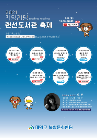 (포탈뉴스) 대전 대덕구에서는 독서의 달을 맞아 오는 11일 ‘리딩리딩 랜선 도서관축제’를 온라인으로 개최한다.