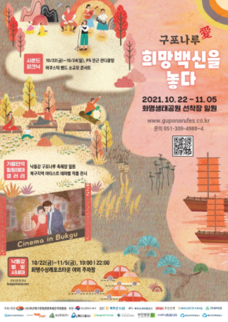 (포탈뉴스) 부산 북구는 구민들에게 코로나19로 지친 일상에 위로와 희망을 주고 침체된 지역문화 예술계에 활력을 불어넣고자 10월 22일부터 11월 5일까지 화명생태공원 화명선착장 일원에서 ‘구포나루愛 희망백신을 놓다’ 문화행사를 개최한다고 밝혔다.