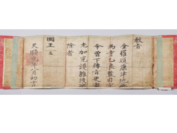 문화재청은 세조의 공식적인 교지문서인 ‘강진 무위사 감역교지’를 포함해 고려시대와 조선시대 문서·서적·불상·불화 등 7건을 보물로 지정 예고했다고 지난 29일 밝혔다.