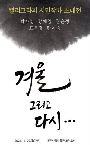 이번 전시에는 소담캘리아트센터의 박자영 작가 등 5명의 시민작가들이‘겨울, 그리고 다시...’라는 부제로 좋은 시와 글귀 등을 담은 30여점의 캘리그라피 작품들을 시립박물관 3층 로비에 전시할 예정이다.