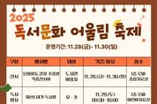 (포탈뉴스통신) 동해교육도서관은 11월 28부터 30일까지 3일간 독서·문화 어울림 축제를 운영한다. 이번 축제는 2025년 한 해를 마무리하는 행사로 ▲문화활동 강좌 수강생들의 작품 전시를 비롯하여 ▲유·초등 6개 강좌를 대상으로 공개수업 ▲미션! 내가 독서왕 ▲문화공연 등 남녀노소 누구나 참여할 수 있는 다채로운 프로그램으로 구성됐다. 29일에는 ‘책 읽는 마법사’ 공연과 함께 ‘과일 생크림 케이크’ 만들기를 비롯하여 총 4가지 체험행사를 진행하며, 영화 속 주인공이 되어보는 ‘캐릭터 코스튬 포토존’ 운영 등 다양한 참여형 도서관 행사가 마련됐다. 안은희 관장은 “풍성한 볼거리와 참여형 독서·문화 행사를 통해 독서가 일상이 되고 평생학습 문화가 자리 잡길 기대한다”며 “많은 시민들이 가족과 함께 축제를 즐기며 소중한 추억을 만들기를 바란다”고 말했다. 축제 프로그램은 사전 신청과 현장 신청을 병행하여 운영할 예정이며, 자세한 일정과 신청 방법은 동해교육도서관 누리집 또는 전화로 문의하면 된다. [뉴스출처 : 강원특별자치도교육청]