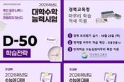 (포탈뉴스통신) 경북교육청은 2026학년도 대학수학능력시험을 50여일 앞두고 수험생들에게 마무리 학습에 도움을 주고자 ‘완벽 수능 마무리 패기키’를 지원한다고 24일 밝혔다. 여기에는 △D-50 학습전략 안내 △대박예감 경북 모의평가 실시 △도내 우수 교사 온라인 강의 △수능 심화 학습 특강 등이 포함된다. 한편, 9월 중순 마무리된 2026학년도 수시 원서 접수에서 ‘재학생 증가’에 따른 수시 지원자 확대와 ‘사탐런 현상’으로 변동이 커지면서 ‘수능 최저학력기준’ 충족의 중요성이 한 층 더 높아졌다. 이에 경북교육청은 경북진학지원단 선생님들이 직접 제작한 “D-50일 학습전략”을 보급했다. 이번 전략서에는 원서 접수 결과와 6월·9월 모의평가 분석을 바탕으로 실제 수능 시험은 의대 증원에 따라 적정한 변별력을 유지할 것이라고 예상했다. 따라서, 선택과 집중, 실전 훈련, 자기통제력의 필요성을 언급하면서 개인 맞춤 학습 방법을 제시하고, 영역별 전략도 제시하면서 완벽한 마무리 전략을 수립할 수 있도록 지원한다. 또한, 도내 고등학교 현장에서도 맞춤형 수능 대비가 활발히 이뤄