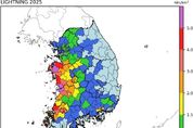 (포탈뉴스통신) 기상청은 2025년 우리나라에서 관측된 낙뢰 정보를 담은 ‘2025 낙뢰연보’를 발간했다. 연보는 기상청 21개 낙뢰 관측망으로 관측한 자료를 통해 분석한 △월별, 광역시·도별, 시군구별 낙뢰 횟수 △단위 면적당(㎢) 횟수 △낙뢰 공간 분포 △주요 5대 낙뢰 사례 등의 내용을 담고 있다. 연보에 따르면 2025년 우리나라에서 관측된 낙뢰는 약 10만 6천 회로, 최근 10년(2016~2025년)의 평균 횟수인 약 10만 5천 회보다는 1.3% 많고, 2024년(145,784회)에 비해서는 27% 적었다. 2025년 낙뢰 발생의 월별 특성을 살펴보면 낙뢰의 57%가 여름철(6월~8월)에 집중되어 최근 10년 평균과 유사한 양상을 보였다. 월별 특성은 최근 10년과 다소 차이가 있었는데, 6월(1,851회)과 8월(23,630회)에는 평균(6월 10,032회, 8월 31,767회)보다 적게 관측됐고, 5월(12,288회)과 9월(30,281회)에는 상대적으로 많이 관측됐다. 낙뢰가 가장 많이 발생한 달은 7월로 35,372회(약 33%)가 관측됐고, 특히 7월 17일은 강한 대기불안정으로 많은 강수와 함께 20