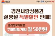(포탈뉴스통신) 김천시는 오는 설 명절을 앞두고 2월 한달간 김천사랑상품권을 15% 특별 할인 판매하여 지역 소비 활성화에 나선다. 시는 이번 설 명절 특별 할인 판매로 침체된 골목상권에 활력을 불어넣고, 지역경제 회복에도 긍정적인 영향을 미칠 것으로 기대하고 있다. 지역 내 소비 촉진 및 민생경제 활성화를 위해 개인이 카드 충전 또는 상품권을 구매할 경우, 종이형 상품권 구매한도 30만 원을 포함해 월 최대 50만 원까지 할인혜택을 제공한다. 개인 보유 한도는 최대 100만 원이며, 연매출 30억 원을 초과하는 가맹점에서는 기존과 같이 결제가 제한될 예정이다. 이번 설 명절 특별 할인 판매로 선물·장보기 등 가계 지출이 늘어나는 시기에 실질적인 가계 부담을 덜어주는 동시에 지역 내 소비 확대로 이어져 지역 상권 전반에 크게 도움이 될 전망이다. 김천시 관계자는 “이번 김천사랑상품권 특별 할인 판매로 설 명절 소비를 촉진하는 마중물 역할을 할 것으로 기대하고 있다. 경기 침체로 어려운 상황에 놓인 지역 소상공인과 시민들을 위해 앞으로도 다양한 민생경제 활성화 방안을 지속적으로 추진해 나가겠다.”라고