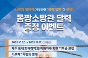 (포탈뉴스통신) 제주특별자치도 소방안전본부가 제주 지역 내 화재 취약 가구 및 피해 가구 지원을 위한 특별 기부 이벤트를 이달 20일부터 12월 12일까지 진행한다. 이번 이벤트는 사회복지공동모금회(회장 강지언)와 함께하며, 사랑의 열매 특별모금을 통해 2만원 이상 기부한 선착순 1,500명에게 ‘2026 제주 몸짱 소방관 달력 (탁상형(A4))’을 증정한다. 2026 제주 몸짱 소방관 달력은 나눔 문화 확산에 동참하는 현직 소방공무원 21명과 의용소방대원 3명의 재능기부를 통해 제작됐다. 제주의 아름다운 자연경관인 오름과 해안가 등을 배경으로, 소방헬기 한라매와 험지펌프차 등 다양한 소방 장비가 함께 담겨 제주소방의 역동적인 모습을 생생히 보여준다. 또한 월별로 자주 발생하는 안전사고 주의사항과 예방 메시지도 수록해 나눔과 안전 의식 고취를 동시에 실천한다. 참여를 원하는 도민은 제주소방안전본부 누리집(홈페이지)에 게시된 배너를 통해 기부 페이지로 이동 후 원하는 금액을 설정해 기부할 수 있으며, 모금된 전액은 도내 화재 취약 가구 및 피해 가구를 돕는 성금으로 사용될 예정이다. &