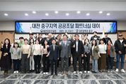 (포탈뉴스통신) 대전 중구는 10일 중구청 대회의실에서 대전지방조달청과 공동으로 ‘대전 중구지역 공공조달 파트너십 데이’를 개최했다고 밝혔다. 이번 행사는 지역 중소기업의 공공조달시장 진입 지원, 기업–수요기관 간 교류 확대, 조달제도 이해도 향상을 위해 마련됐으며, 중구 관내 기업과 중구청 관계자 등 30여 명이 참여했다. 행사에는 ▲조달기업 제품 소개 ▲조달등록 절차 안내 ▲조달청 지원제도 설명 등 기업들에게 실질적인 도움을 주는 프로그램이 진행됐으며, 특히, 중구 관내 조달기업과 중구청 수요부서를 1:1로 연결하는 맞춤형 매칭 상담이 운영돼 큰 관심을 모았다. 기업들은 자사의 조달등록 제품을 직접 소개하고, 수요부서 담당자들은 제품 성능·활용도·가격 등을 현장에서 즉시 확인하며 실제 구매 가능성을 논의하는 등 실무 중심의 상담이 이뤄졌다. 중구 관계자는 “지역 기업이 공공조달 시장에서 더욱 활발히 활동할 수 있도록 실질적인 지원을 지속하겠다”라며, “대전지방조달청과 협력해 기업의 조달시장 진입을 돕는 다양한 프로그램을 확대해 나가겠다”라고 말했다. [뉴스출처 : 대전 중구]