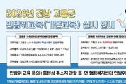 (포탈뉴스통신) 고흥군은 민방위대원의 대응 역량을 강화하고자 2026년 상반기 민방위 기본교육을 실시한다고 밝혔다. 이번 교육은 민방위 대원 연차에 따라 구분해 운영한다. 1~2년차 대원은 오는 4월 27일부터 29일까지 고흥문화회관 송순섭실에서 집합교육을 받는다. 교육 내용은 민방위 기본교육을 비롯해 화재, 지진, 화생방 등 일상생활과 밀접한 안전교육으로 구성된다. 집합교육 대상자는 지정된 통지일 외에도 다른 일정에 참여할 수 있으며, 관내 교육 참석이 어려운 경우 국민재난안전포털을 통해 타 시군구 교육 일정을 확인한 후 참여할 수 있다. 또한, 3년차 이상 민방위대원은 사이버교육으로 대체되며, 4월 27일부터 6월 30일까지 안내된 민방위 사이버교육센터에 접속해 교육을 이수해야 한다. 다만, 전국동시지방선거 기간인 5월 21일부터 6월 3일까지는 교육이 일시 중지된다. 군 재난안전과 관계자는 “민방위대원은 연 1회 반드시 교육을 이수해야 하며, 미 이수시 과태료가 부과될 수 있다”며 “교육 미이수자를 대상으로 하반기 보충교육을 2회 추가 실시해 모든 대원이