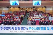 (포탈뉴스통신) ‘2025년 수원시 주민자치 활동평가’에서 율천동 주민자치회가 대상을 차지했다. 수원시가 5일 시청 대강당에서 개최한 ‘2025년 주민자치 활동평가 우수사례 발표회’에서 ‘주민이 직접 가꾼 ‘새빛밤밭’ 이야기’를 발표한 율천동이 대상을 받았다. 금곡동(진짜 주민자치가 나타났다 IN 금곡동), 고등동(기억을 잇고, 사람을 잇고 내일을 잇다), 광교2동(주민과 자연이 함께하는 광교2동 주민자치회)가 최우수상으로 선정됐다. 연무동·권선1동·화서2동·망포2동은 우수상, 정자1동·권선2동·행궁동·매탄2동은 장려상을 받았다. 대상을 받은 율천동은 ▲우리마을 제대로 알기 ▲다양한 주체가 함께 완성하는 율천 ▲환경과 교육으로 미래를 준비하는 마을 등을 주제로 발표했다. 이날 발표회에서는 지난 10월 1~22일 구별 자체 평가를 거쳐 우수 동으로 선정된 12개 동(구별 3개 동)이 우수사례를 발표했다. 내·외부 주민자치 분야 전문가가 심사했다. 정량 평가(50%), 발표 점수(50%)를 합산해 순위를 결정했다. 시상금은 대상 220만 원, 최우수상 120만 원, 우수상 80