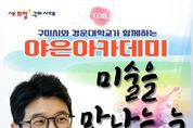 (포탈뉴스통신) 구미시는 10월 24일 오후 2시 구미시평생학습원 대강당에서 미술평론가 조원재를 초청해 ‘미술을 만나는 눈’을 주제로 '제133회 야은아카데미' 특별강연을 연다. 조원재 평론가는 경영학을 전공했으나 미술에 대한 남다른 열정으로 유럽 각국의 미술관을 직접 탐방하며 독학으로 미술을 공부했다. 2016년 팟캐스트 ‘방구석 미술관’을 시작으로 평론 활동을 이어왔으며, 저서 『삶은 예술로 빛난다』와 JTBC ‘방구석 1열’ 등 다양한 매체에서 활발히 활동하고 있다. 이번 강연에서는 ‘미술은 누구나 쉽고 재미있게 가지고 놀 수 있는 장난감’이라는 그의 철학 아래, 미술을 어렵게 느끼는 대중의 인식을 바꾸고 누구나 흥미롭게 접근할 수 있도록 흥미로운 스토리텔링을 들려줄 예정이다. 야은아카데미 강연은 구미시민이면 누구나 무료로 참여할 수 있으며, 자세한 내용과 신청 방법은 구미시청 또는 구미시평생학습원 홈페이지에서 확인할 수 있다. [뉴스출처 : 경상북도 구미시]