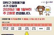 (포탈뉴스통신) 대전 대덕구는 주민 생활편의를 높이고 불법투기를 예방하기 위해 2026년 1월부터 대형폐기물 수거일을 동별 주 2회로 확대 운영한다. 그동안 대덕구는 대형폐기물을 주 1회 수거해 왔으나, 배출 시기와 수거 일정이 맞지 않아 주민 불편이 이어져 왔다. 이에 구는 주민 의견과 현장 여건을 반영해 모든 동을 대상으로 주 2회 수거 체계로 전환하기로 했다. 수거는 월요일부터 토요일까지 평일 기준으로 운영되며, 동별 수거 요일은 대덕구 누리집과 행정복지센터 게시판, 안내 현수막 등을 통해 사전에 안내된다. 신청 방법은 기존과 동일하게 인터넷 배출신고(대덕구 홈페이지) 또는 전화 접수를 통해 가능하며, 대덕구 자원순환센터가 수거를 담당한다. 수거 대상은 가구, 가전제품, 이불 등 종량제 봉투로 배출이 어려운 대형 폐기물로, 신고 후 스티커를 부착하면 된다. 대덕구는 이번 수거 주기 확대를 통해 장기간 배출 대기 문제를 해소하고 무단투기와 방치 사례가 크게 줄어들 것으로 기대하고 있다. 최충규 대덕구청장은 “주민이 체감하는 생활환경 개선이 무엇보다 중요하다”