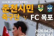 (포탈뉴스통신) 춘천시민축구단이 홈에서 분위기 반전을 위한 ‘안방 승부’를 펼친다. 춘천시민축구단이 오는 26일 오후 2시 송암스포츠타운 주경기장에서 FC목포를 상대로 시즌 네 번째 홈경기를 치른다. 이번 경기는 최근 흐름을 끊고 다시 상승세로 전환하기 위한 분기점이 될 전망이다. 특히 홈경기마다 이어지고 있는 시민들의 응원 열기와 치어리더와 함께하는 응원전으로 선수단에 힘을 보태며 경기장을 찾은 시민들이 현장에서 함께 즐기는 축제형 분위기를 만들어갈 계획이다. 또한 지난 경기부터 관람객 편의를 위해 W석을 개방한 가운데 이번 경기에서도 동일하게 운영돼 보다 쾌적한 관람 환경을 제공한다. 경기 당일에는 다양한 현장 이벤트가 운영된다. 팬사인회를 비롯해 참여형 프로그램인 ‘코끼리코 슈팅 챌린지’가 진행되며 선착순 100명에게는 웰컴키트를 제공한다. 서큘레이터 등 경품 이벤트도 함께 마련된다. 이와 함께 푸드트럭과 ‘농부의 장터’가 운영돼 경기장을 찾은 시민들에게 먹거리와 즐길거리를 동시에 제공할 예정이다. 춘천시민축구단 관계자는 “홈에서 분위기를 다시 끌어올릴 수 있는 중