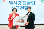 (포탈뉴스통신) 서울 강동구는 지난 17일 가수 별사랑과 팬클럽 ‘별사탕’ 관계자 등이 참석한 가운데 '가수 별사랑 팬클럽 성금 전달식'을 개최했다고 24일 밝혔다. 가수 별사랑은 팬클럽 별사탕과 함께 지원이 필요한 아동·청소년을 위해 성금 300만 원을 전달했다. 이번 성금은 강동구 드림스타트 아동을 위한 장학금으로 사용될 예정으로, 경제적 여건이 어려운 아동·청소년의 성장과 교육 지원에 도움이 될 것으로 기대된다. 특히 이번 기부는 별사랑이 2024년에 이어 두 번째로 강동구에 전달한 성금이라는 점에서 의미를 더했다. 별사랑과 팬클럽 별사탕은 꾸준한 나눔을 이어오고 있다. 강동구는 2024년 드림스타트 아동 50가구를 대상으로 팬클럽 별사탕이 후원한 간편식과 문구류 등을 담은 ‘사랑의 꾸러미’를 만들어 전달한 바 있다. 별사랑은 모 방송사의 트로트 경연 프로그램에 출연해 이름을 알린 가수로, 현재 강동구 둔촌동에 거주하며 활발한 활동을 이어가고 있다. 팬클럽 별사탕 또한 꾸준한 기부와 봉사활동을 펼치고 있다. 이수희 강동구청장은 "아이들을 위해 따뜻한 마음을 모아주신 별사랑 님과 팬