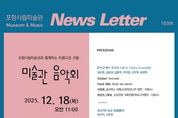 (포탈뉴스통신) 포항시립미술관은 오는 18일 오전 11시, 제103회 미술관 음악회 ‘MUSEUM · MUSIC’를 개최한다. 이번 음악회는 2025년 마지막 음악회로, 크리스마스와 연말 분위기에 어울리는 다채로운 음악 프로그램을 마련해 시민들에게 따뜻한 문화 향유의 시간을 선사할 예정이다. 미술관 음악회는 2014년부터 ‘문화가 있는 날’과 연계해 정기적으로 운영되고 있는 포항시립미술관의 대표 문화 프로그램이다. 전시 감상과 공연을 결합한 복합 문화 향유 모델로 자리 잡았으며, 매월 다양한 장르의 음악을 선보여 시민들이 일상 속에서 예술을 가까이 접할 수 있도록 하고 지역 문화예술 활성화에도 꾸준히 기여해 왔다. 이번 제103회 음악회는 지역 기반 생활예술단체와 시민 예술인이 함께하는 공연으로 기획됐다. 클래식 기타 앙상블 ‘폴인클래타(Fall in Clatta)’를 중심으로 혼성 포크기타 듀오 ‘로얄젤리’, 하모니카와 팬플룻 협연, 싱어송라이터 공연까지 어우러진 다(多)장르 구성으로 세대와 취향을 아우르는 무대를 선보인다. 공연의 문을 여는 폴인클래타 앙상블은 슈베르트