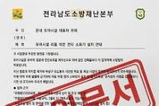 (포탈뉴스통신) 해남소방서가 최근 전라남도소방재난본부를 사칭해 관내 유아시설 들에 소방시설 설치를 강요하는 허위 공문이 유포되고 있어 관계자들의 각별한 주의가 필요하다고 11일 밝혔다. 이번에 발견된 허위 문서(사진 참조)는 ‘유아시설 리튬 이온 전지 소화기 설치 안내’라는 제목으로 관내 유아시설 대표자들을 수신자로 발송됐다. 해당 문서는 소방 관련 법령을 교묘하게 짜깁기하여 유아시설 내 리튬 이온 소화기 및 질식소화포 비치를 법적 의무인 것처럼 위장하고 있다. 특히, 기한 내 미설치 시 시정명령, 사용정지, 과태료 부과 등 행정처분이 이루어질 수 있다고 협박하고 현장점검까지 예고해 관계자들의 불안감을 조성하고 있다. 이는 가짜 공문을 통해 특정 소방용품의 구매를 유도하는 전형적인 ‘소화기 강매 사기’ 수법이다. 해남소방서 관계자는 “소방관서에서는 어떠한 경우에도 공문을 통해 특정 업체의 소화기나 소방시설 구매를 직접적으로 강요하거나 알선하지 않는다”며 “이러한 우편물이나 팩스를 수령할 경우 절대 문서에 기재된 번호로 연락하거나 물품을 구매하지 말고 즉시 해남소방서나 경찰에 신고해 달라