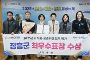 (포탈뉴스통신) 장흥군은 전라남도 주관 ‘2025년 식품·공중위생업무 종합평가’에서 ‘최우수기관’으로 선정됐다. 이번 수상으로 식품·공중위생분야에서 장흥군보건소 위생부서 설립 이래 최초로 최우수기관상을 수상하는 영예를 안았으며, 그 동안 업무를 내실있게 추진해 온 것으로 평가된다. ‘식품·공중위생업무 종합평가’는 전남도가 22개 시군을 대상으로 유통식품 안전성 확보, 식품위생업소 관리, 식중독 예방관리 사업, 공중위생업소 관리, 담당자 역량강화 5개 분야, 21개 정량 지표로 평가를 실시했다. 장흥군은 관내 식품제조업소 및 음식점, 공중위생업소에 대해 위생 지도점검을 강화하고, 소비자식품위생감시원의 효율적 운영을 통해 안전한 식품의 제조·유통기반 조성과 위생업소 위생수준 향상을 위해 노력해왔다. 특히, 소규모 식품제조가공업자를 위한 공유주방영업 등록을 통해 창업 부담을 줄이고 효율성을 높이는 기관 간 협업 정책 추진, 위생업소 친절서비스 개선 및 식중독 등 예방 컨설팅으로 위해사고 사전 차단 등 타 시군과 차별화된 사업 추진에 대해 높은 평가를 받았다. 장흥군 관계자는 “앞으로도 안전한