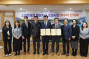 (포탈뉴스통신) 장흥군은 스마트농업 육성지구의 체계적이고 효율적인 조성을 위해 한국농어촌공사 장흥지사와 위수탁 협약을 체결했다고 밝혔다. 이번 협약은 스마트농업 분야의 전문성과 사업관리 역량을 갖춘 공공 전문기관과의 협력을 통해 사업의 전문성·안정성·추진력을 확보하고, 육성지구 조성을 체계적으로 추진하기 위해 마련됐다. 장흥군이 추진하는 스마트농업 육성지구 조성사업은 총사업비 1,014억 원(지특 100억 원, 도비 30억 원, 군비 84억 원, 민자 800억 원)을 투입해 관산읍 삼산간척지 일원에 스마트팜 기반시설을 구축하는 대규모 프로젝트다. 2026년부터 2028년까지 3개년에 걸쳐 단계적으로 추진될 예정이다. 특히 임대형 스마트팜 조성과 연계해 청년농업인의 안정적인 영농 정착을 지원하고, 첨단 농업기술을 활용한 생산성 향상과 지역 농업 경쟁력 강화에 기여할 것으로 기대된다. 협약에 따라 한국농어촌공사 장흥지사는 기본계획 및 실시설계 수립, 공사 발주 및 감독, 사업관리 등 조성사업 전반을 수행하게 된다. 군은 그간 태양광 발전 집적화 단지와 연계한 스마트팜 조성 업무