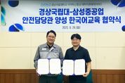 (포탈뉴스통신) 경상국립대학교 RISE사업단 산학친화프로그램과 삼성중공업은 9월 29일 오후 가좌캠퍼스 언어교육실 국제교육부처장실에서 외국인 근로자의 안전한 근로환경 조성과 지역사회 정주 여건 조성을 위해 ‘외국인 근로자 대상 한국어 교육체계 구축에 관한 업무협약’을 체결했다. 이 협약은 경상국립대학교 RISE사업단의 지역 연계협력 강화의 일환으로, 삼성중공업에 근무하는 외국인 근로자의 안전 역량을 강화하고 지역사회 적응을 돕기 위한 한국어 교육체계를 산학 공동으로 개발·운영하기 위한 것이다. 이를 통해 산업현장 맞춤형 실용 한국어 교육 프로그램을 개발하고 산학협력에 기초한 유기적인 교육지원 체계를 구축할 수 있을 것으로 기대된다. 이날 협약체결식에는 경상국립대학교 RISE사업단 산학친화프로그램 부수현 책임교수, 국어교육학과 유해준 교수와 삼성중공업 이상억 총무팀장 등 7명이 참석했다. 행사는 전체 사업 소개, 협약 내용 설명, 협약서 서명, 기념촬영 등의 순으로 진행됐다. 양 기관은 협약서에서 ▲외국인 근로자 대상 한국어 교육 프로그램 개발 및 운영 ▲외국인 안전담당관 양성 및 한국어 교육 기반 안전교육강사