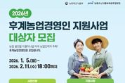 (포탈뉴스통신) 전남 강진군이 지난 5일부터 오는 2월 11일까지 ‘2026년 후계농업경영인 육성사업’ 신청자를 모집한다. ‘후계농업경영인 육성사업’은 농업 발전을 이끌 예비 농업인과 성장 가능성이 높은 농업경영인을 발굴해 자금 지원과 함께 교육, 컨설팅 등을 종합적으로 제공함으로써 안정적인 농업 경영체로 성장할 수 있도록 지원하는 사업이다. 신청 대상은 신청 연도 기준 18세 이상 50세 미만(1976년 1월 1일~2008년 12월 31일)으로, 영농 종사 경력이 없거나 10년 미만인 농업인이다. 지원조건으로는 대학의 농업 관련 학과 또는 농업계 고등학교를 졸업했거나, 시장·군수·구청장이 인정한 농업 교육기관에서 관련 교육을 이수한 자, 병역 미필자의 경우 2026년도 산업기능요원 편입 대상자이거나 군 복무를 마친 자 등이다. 특히, 이번 2026년도 사업 신청은 농림사업정보시스템(Agrix) 고도화에 따라 구축된 ‘농업e지’ 홈페이지를 통해 온라인으로만 접수가 진행된다. 신청 희망자는 해당 홈페이지에 신청서와 구비서류를 기한 내 제출해야 하며, 현장 방문 접수는 받지 않는다. &nb