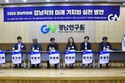 (포탈뉴스통신) 경남연구원은 11일 경남연구원 1층 가야대회의실에서 경남의 정체성 확립과 미래 발전 전략 모색을 위한 학문적 논의의 장인 「2025 경남학 포럼」을 개최했다고 밝혔다. ‘경남학의 미래 가치와 실천 방안’을 대주제로 열린 이번 포럼은 도내 4개 대학(경상국립대, 국립창원대, 인제대, 경남대)의 후원으로 진행됐으며, 70여 명의 전문가, 도민, 관계 공무원 등이 참석해 경남학에 대한 높은 관심을 보여주었다. 오동호 경남연구원장은 개회사에서 "이번 포럼은 경남학포럼의 역사적인 첫 출범"임을 강조하며, “경남학은 경남의 정체성 확립과 미래 비전 설계를 위한 든든한 지적 토대로서, 경남연구원이 ‘경남학 연구의 산실이자 플랫폼’으로 도약하는 중요한 이정표가 될 것이다”라고 말했다. 김기영 경상남도 기획조정실장은 “경남학은 도민의 삶과 지역의 가치를 규명하고 정책·문화 영역에서 활용할 중요한 자산”이라며, “도정 또한 경남학이 지역의 미래전략으로 자리매김할 수 있도록 연구 기반 확충과 정책 개발을 적극 지원하겠다”고 밝혔다. 백태현 경상남도의회 기획행정위원장은 “경남학은 과거 성찰과 미래 방향