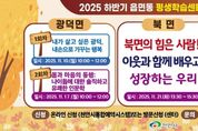 (포탈뉴스통신) 천안시는 이달 10일부터 다음 달 25일까지 ‘2025년 하반기 읍면동평생학습센터 인문학 특강’을 운영한다고 3일 밝혔다. 시는 지역 주민들의 삶 가까이에서 평생학습 기회를 제공하고자 광덕·북면·입장면에서 읍면동 평생학습센터를 운영하고 있다. 하반기 프로그램은 전문 강사를 초빙하여 지역별 특성에 맞춘 ‘마을 학습공동체와 인문학 특강’으로 진행될 예정이다. 특강은 ▲광덕면 ‘내가 살고 싶은 광덕, 내 손으로 가꾸는 행복’, 몸과 마음의 동행: ‘나이 듦에 대한 솔직하고 유쾌한 인문학’▲북면 ‘북면의 힘은 사람! 이웃과 함께 배우고 성장하는 우리’ ▲입장면 ‘마을을 바꾸는 힘, 사람에게 있습니다! 함께 성장하는 지혜’, ‘마음을 잇는 갈등 조정 기술’로 구성됐다. 특강 신청은 평생학습센터 방문 또는 천안시 통합예약시스템에서 하면 된다. 자세한 사항은 천안시 평생학습포털 누리집 또는 두정평생학습관으로 문의하면 된다. 홍승종 교육청소년과장은 “각 지역의 특성을 반영한 전문가의 맞춤형 프로그램을 통해 지역 공동체 발전에 기여하고, 지역민들의 행복도를 높이는 데 도움