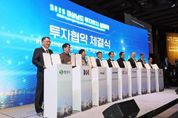 (포탈뉴스통신) 양산시는 28일 서울에서 열린‘2025년 경상남도 투자유치설명회’에서 ㈜SK인더스트리와 ㈜이앤코와의 총 480억 원 규모의 투자협약(MOU)을 체결했다고 밝혔다. 현재 두 기업은 각각 양산과 부산에 본사를 두고 있으며, 덕계경동스마트밸리 일반산업단지와 가산일반산업단지로 공장을 확장 이전하고, 총 35명의 지역 내 신규 일자리를 창출할 계획이다. ㈜SK인더스트리는 자동차용 사출성형과 패드류 제작 등 핵심 부품을 생산하는 자동차 부품 제조기업으로 단기간에 빠른 성장을 이루며 생산 능력과 품질 경쟁력을 강화하고 있다. 2029년까지 덕계경동스마트밸리 일반산업단지 내 신설 공장을 설립하여 400억 원 규모의 투자와 21명의 신규 고용을 통해 생산 역량 확대와 품질 향상으로 기업 경쟁력을 한층 높일 예정이다. ㈜이앤코는 해양 플랜트 부품 설계를 포함한 첨단 설비를 개발하며, LNG와 수소 등 친환경 에너지 수송 설비 생산에 주력하는 기업이다. 2026년까지 가산일반산업단지 내 80억 원 규모의 투자와 14명의 고용 확대를 통해 친환경 에너지 산업 경쟁력을 높이고 기술 혁신을 선도