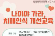 (포탈뉴스통신) 익산시가 북부권 어르신을 대상으로 치매 예방과 조기 발견의 중요성을 알리는 프로그램을 운영한다. 익산시 함열건강증진형 보건지소는 6일부터 10일까지 '나이야 가라, 치매 인식개선 교육' 참여자 20명을 모집한다. 이번 프로그램은 치매 인식개선 교육과 인지자극 체험 등을 익산시 치매안심센터 전문 인력이 진행한다. 이를 통해 참여자들이 치매 예방에 필요한 정보를 쉽고 재미있게 익힐 수 있도록 돕는다. 참여 대상은 함열읍, 함라면, 성당면, 용안면, 낭산면, 망성면, 용동면에 거주하는 만60~79세 주민이며, 모집 인원은 선착순 20명이다. 신청은 함열건강증진형 보건지소에 방문하거나 전화로 하면 된다. 이진윤 보건소장은 "치매는 조기 발견과 예방이 중요한 만큼, 이번 교육을 통해 어르신들이 치매에 대한 올바른 정보를 습득하고 건강한 노후를 준비하는 계기가 되길 바란다"며 "많은 관심과 참여를 부탁드린다"고 전했다. [뉴스출처 : 전라북도 익산시]