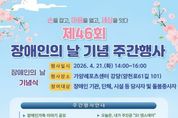 (포탈뉴스통신) 서울 강서구는 4월 20일 장애인의 날을 맞아, 오는 18일부터 일주일간 ‘제46회 장애인의 날 기념 주간행사’를 개최한다고 밝혔다. 이번 행사는 ‘손을 잡고, 마음을 열고, 세상을 잇다’라는 슬로건 아래, 장애에 대한 지역사회의 이해를 높이고 장애인 권익 증진과 사회 참여를 독려하기 위해 마련됐다. 행사 기간 중에는 ▲강서 가치(Together) 더하기 복지 박람회 ▲제46회 장애인의 날 기념식 ▲오! 댄스데이 ▲장애인 인권 영화 상영회 등 장애인과 비장애인이 함께 어우러질 수 있는 다양한 프로그램이 펼쳐진다. 먼저 오는 18일 오전 10시 마곡광장(강서구 마곡중앙5로 9)에서 ‘강서 가치(Together) 더하기‘ 복지 박람회가 열린다. 관내 장애인 복지기관들이 협력하여 추진하는 행사로, 많은 지역 주민이 참여할 수 있도록 박람회 형태로 기획됐다. 강서구 주민 누구나 자유롭게 참여할 수 있으며, 장애 인식개선 체험부스, 장애인 예술 작품 전시, 장애인 생산품 판매, 먹거리 부스 등 풍성한 볼거리와 즐길 거리를 제공한다. 21일 오후 2시에는 가양레포츠센터