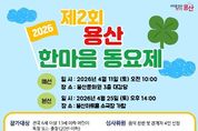 (포탈뉴스통신) 서울 용산구가 4월 25일 토요일 오후 2시, 용산아트홀 소극장 가람(녹사평대로 150)에서 ‘제2회 용산 한마음 동요제’를 개최한다. 전국에서 예선을 통과한 6세~13세 어린이 22개 조(팀)가 참가해 맑은 목소리로 무대를 선보일 예정이다. 이번 동요제는 용산문화원이 주관하고 용산구가 지원한다. 아이들이 꿈과 재능을 마음껏 펼칠 수 있는 문화예술의 장을 마련함으로써, 건전한 정서를 기르고 음악적 역량을 발휘할 수 있는 기회를 제공하고자 기획됐다. 지난해 9월 성황리에 열린 제1회 동요제에 이어 두 번째로 열리는 행사다. 참가자들은 자유곡을 독창 또는 중창으로 선보이며, 심사는 전문 심사위원 4명이 맡는다. 심사위원단은 음악성, 표현력, 창의성, 무대 태도(매너), 관객 호응도 등 다양한 요소를 종합적으로 평가한다. 시상은 총 5개 부문으로 진행되며, 각 부문 수상자에게는 상장과 트로피, 상금이 수여된다. 특히 대상 수상자에게는 상금 100만 원이 주어진다. 구는 안전한 행사 운영을 위해 당일 무대, 조명, 계단 등 시설 전반을 면밀히 점검하고 현장에 안전요