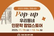 (포탈뉴스통신) (재)부산진문화재단은 지역문화와 인문 감성을 결합한 2025 중장년 인문프로그램 ‘우리동네 인문학 팝업스토어’를 오는 11월 19일부터 12월 14일까지 전포밭개마을센터에서 운영한다고 밝혔다. 이번 팝업스토어는 전포동의 일상과 기억을 주제로 예술·기록·공예·건축·전통주 등 다양한 콘텐츠를 시민이 직접 체험할 수 있도록 기획됐다. 프로그램은 총 4개 주제로 구성되며, 주차마다 지역 예술가 및 활동가와 협업을 통해 선보인다. △ 필아트×전포밭개마을센터(11.19.~11.23.) △ 서면미술관×故김진희 작가(11.26.~11.30.) △ 서면미술관×캘리토닉 건축사 유창욱(12.3.~12.7.) △ 제이케이크래프트×하마터면협동조합(12.10.~12.14.) 특히 이번 팝업스토어는 판매수익 전액을 전포동 발전기금으로 환원해 지역과 창작자·주민이 함께 만드는 지속 가능한 문화 순환 구조를 실현한다는 점에 의미가 크다. 재단은 이를 통해 인문정신문화의 생활 속 확산과 지역 커뮤니티 자생력 강화에 이바지할 것으로 기대한다고 전했다. 팝업스토어 운영시간은 팝업스토어별로 상이