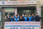 (포탈뉴스통신) ㈜KSS해운(대표 박찬도) 임직원으로 구성된 나눔봉사단은 지난 19일 영주1동주민센터에 방문하여 저소득 주민에게 지원할 사랑의 김장김치(5kg) 150박스를 전달했다. ㈜KSS해운 나눔봉사단은 2013년부터 매년“사랑의 김치 나눔 한마당”을 통해 영주1동 저소득 어르신 등 취약계층 주민에게 김장김치를 지원하고 있다. ㈜KSS해운 관계자는“추운 겨울을 앞두고 이번 김장김치 나눔이 어려운 이웃들에게 큰 힘이 되길 바란다”고 말했다. 이귀남 영주1동장은“매년 한마음으로 이웃사랑을 실천해 주시는 ㈜KSS해운 나눔봉사단원들께 깊이 감사드리며, 보내주신 따뜻한 마음을 취약계층에게 잘 전달하겠다”고 전했다. [뉴스출처 : 부산시 중구]