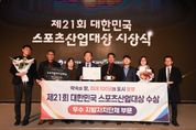 (포탈뉴스통신) 통영시는 11일 서울 올림픽파크텔에서 열린 ‘제21회 대한민국 스포츠산업대상’시상식에서 우수 지방자치단체상을 수상했다고 밝혔다. ‘대한민국 스포츠산업대상’은 문화체육관광부가 주최하고 국민체육진흥공단이 주관하는 스포츠 산업 분야 국내 최고 권위의 상으로 한 해 동안 국내 스포츠 산업 발전에 기여한 지자체, 개인, 단체를 선정해 시상한다. 통영시가 수상한 우수 지방자치단체상은 전국 226개 지방자치단체를 대상으로 17개 광역지방자치단체의 추천을 받아 후보가 선정되며, 산업·스포츠·언론계 등 외부 전문가의 1차 서류심사와 2차 프레젠테이션 심사, 국민 공개 검증, 문화체육관광부 공적심사까지 모두 통과해야 하는 만큼 그 의미가 더욱 크다. 시는 이러한 엄격한 절차 속에서 다양한 성과를 인정받으며 최종 선정됐다. 이번 수상은 스포츠 기반 시설 확충과 국제ㆍ전국 규모 스포츠 대회 유치 확대, 전지훈련팀 유치 활성화와 스포츠 기반 자원 활용을 통한 스포츠 관광 활성화로 지역경제 파급 효과 창출, 프로 스포츠단을 통한 통영시 브랜드 홍보 등이 높은 평가를 받은 결과다. 시는 민선 8기 출범 이후