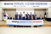 (포탈뉴스통신) 전라남도 시군 의회 의장협의회는 지난 10월 1일 영광군의회에서 개최된 제307회 정례회의에서“광주광역권 개발제한구역 전면 해제 촉구 건의안”을 만장일치로 채택했다. 이번 건의문은 장성군의회 심민섭 의장이 발의한 것으로 광주광역권을 둘러싼 4개 시 군(장성, 담양, 화순, 나주)에 수십년간 과도한 개발제한구역을 지정하면서 수도권에는 과밀억제를 명분으로 개발제한구역 제도를 더욱 엄격히 적용해야 하나, 오히려 수도권을 중심으로 해제를 해주면서도 비수도권인 광주광역권에는 여전히 경직되고 일률적인 규제를 강요하는 것은 명백한 지역 역차별이자 지방시대 국가균형발전 정책에도 역행하는 조치라며 정부에 전면 해제를 강력히 요구했다. 건의문에는 ▲ 광주광역권 개발제한구역 전면 해제 ▲ 지역발전에 대한 사항을 지방정부가 결정할 수 있도록 모든 권한을 자치단체에 이양할 것을 촉구하는 내용을 담고 있으며, 건의문을 발의한 심민섭 의장은“광주광역권 개발제한구역은 시대적 역할을 다한 만큼, 지역간 균형발전을 실현하고 나아가 국가 전체의 지속가능한 발전을 도모하기 위해서 개발제한구역 전면 해제가 반드시 필요하다.”고 강조했다. &nb