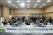 (포탈뉴스통신) 고흥군은 지난 11일 고흥 스마트팜혁신밸리 2층 대강당에서 국립순천대학교와 함께 ‘그린스마트 농업대학 평생교육 과정 수료식’을 개최했다고 밝혔다. ‘그린스마트 농업대학 평생교육과정’은 국립순천대학교가 글로컬대학30 사업과 연계해 운영하는 프로그램으로, 고흥군과 협력해 지역 농업인을 위한 실용 중심 교육을 추진하고 있다. 이번 과정은 2025년 8월부터 2026년 2월까지 약 6개월간 운영됐다. 교육과정은 스마트원예반 44명, 스마트한우반 59명을 대상으로 이론 교육과 현장 중심 실습을 병행해 최신 농업기술과 경영·유통 지식을 실제 농업 현장에 적용할 수 있도록 구성됐다. 수료식에는 공영민 군수와 국립순천대학교 그린스마트팜 고흥캠퍼스 단장, 교육 관계자와 교육 수료생 등 70여 명이 참석해 교육과정의 경험과 성과를 공유했다. 교육에 참여한 한 수강생은 “이론뿐 아니라 현장에서 바로 활용할 수 있는 실습 중심 교육이 큰 도움이 됐다”며 “교육을 통해 배운 내용을 영농 현장에 적용해 생산성과 경영 효율을 높여 나가고 싶다”고 소감을 전했다. 공영민 군수는 “그린스마트 농업대학
