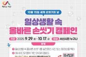 (포탈뉴스통신) 충남 서산시는 세계 손씻기의 날(10월 15일)을 맞아 10월 17일까지 다양한 행사를 진행한다고 밝혔다. 세계 손씻기의 날은 각종 감염병 예방에 필수적인 손씻기 습관을 개선하고자 유엔(UN)에서 제정한 날이다. 이번 행사는 올바른 손씻기 교육·홍보를 통해 시민들의 감염 예방 인식을 높이고, 감염병 예방을 위한 올바른 손씻기 실천 문화 정착을 위해 진행된다. 세계 손씻기의 날인 15일에는 서산시보건소에서 세계 손씻기의 날 홍보관을 운영한다. 홍보관에서는 △손세정 검사기를 활용한 올바른 손씻기 체험 △감염병 예방 퀴즈 등이 진행되며, 참여자들에게는 올바른 손씻기 6단계 안내 홍보물을 배부해 손씻기의 중요성을 알릴 예정이다. 또한 행사 기간 중 경로당과 지역아동센터를 직접 방문해 올바른 손씻기 교육을 실시한다. 아울러 서산 시민들을 대상으로 일상생활 속 올바른 손씻기 실천 SNS 참여 이벤트도 진행해, 각 가정에서 손씻기 실천 모습을 SNS에 공유해 참여할 수 있도록 했다. 한은숙 감염병관리과장은 "손씻기는 가장 기본적이면서도 효과적인 감염병 예방