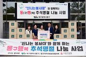 (포탈뉴스통신) 대구 동구청은 지난 25일, 민족 대명절 추석을 맞아 지역 내 홀몸 어르신 세대에 명절음식을 전달하기 위한 ‘함께 동(구)행(복) 명절 나눔사업’을 실시했다. 이번 행사는 신나는 봉사대 회원 15명이 참여해 명절 음식 100상자를 준비해 나눠주는 방식으로 진행됐다. 윤석준 동구청장은 “매년 저소득 홀몸 어르신 세대가 풍요로운 추석을 보낼 수 있도록 적극적으로 동참해주신 정희경 회장을 비롯한 신나는 봉사대에 깊은 감사의 인사를 드린다”며 “추석 명절을 맞아 어르신들께서 외롭지 않도록 따뜻한 마음을 함께 나눌 수 있어 뜻깊다”고 말했다. 한편 ‘함께 동(구)행(복) 명절 나눔사업’은 대구 동구청과 대구사회복지공동모금회와의 협약을 통해 진행되는 ‘행복동구 희망Dream’의 기획사업 일환이다. [뉴스출처 : 대구시동구청]