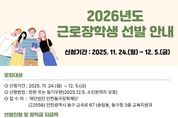 (포탈뉴스통신) (재)인천동구장학재단은 지역 대학생들을 대상으로 ‘2026년도 근로장학생’을 선발한다고 밝혔다. ‘근로장학생’은 대학생들에게 공공기관 및 사회복지시설 등에서 근로 기회를 제공하고 그 대가로 장학금을 지급하는 인천동구장학재단의 사업이다. 신청 자격은 공고일 기준 본인 또는 보호자가 동구에 2년 이상 주민등록을 두고 있는 대학교 재(휴)학 중인 학생이다. 또한 직전 학기 성적(휴학생의 경우 휴학 직전 학기 성적)이 4.5만점 기준 3.0(B) 이상이어야 한다. 신청은 11월 24일~12월 5일까지 (재)인천동구장학재단(동구 금곡로 67, 동구청 3층 교육지원과)으로 방문 또는 등기우편으로 하면 된다. 장학재단은 접수된 서류를 바탕으로 장학생 선발심사위원회를 거쳐 총 30명의 근로장학생을 선발하게 되며, 합격자는 2025년 12월 29일~2026년 1월 26일까지 20일간 근무 후, 1인당 약 192만 원의 장학금을 받게 된다. 김찬진 동구청장은“지역 대학생들이 방학 동안 근로장학생으로 근무하면서 실무 경험을 쌓고 자립의 발판을 마련하길 기대한다”며, “동구에서는