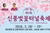 (포탈뉴스통신) 서귀포시는 몸과 마음이 가벼워지는 따스한 봄, 가족・연인・친구 간의 잊지 못할 추억을 선사할 제3회 신풍벚꽃터널축제가 28일~29일 양일간 성산읍 풍요정원 및 신풍리레포츠 공원 일원에서 개최된다고 밝혔다. 신풍리마을회가 주최하는 이번 행사는 3km가 넘게 벚꽃이 흐드러지게 펼쳐지는 신풍리 벚꽃길을 배경으로, 다양한 프로그램이 진행된다. 체험 프로그램으로는 ▲남산봉오름 및 김정문 알로에숲 탐방 ▲먹이주기 체험 ▲폴라로이드 사진 찍기 ▲묘종나눔 체험 ▲사생대회 ▲ 목공예 ▲캐리커처 그리기 등이 진행되고, 먹거리 장터에서는 기름떡, 수육 등의 ▲전통 음식과 ▲지역 특산물 ▲각종 분식 메뉴를 선보여 축제의 풍미를 더할 예정이다. 축제 이튿날에는 왕복 1시간 코스로 진행되는 ‘벚꽃 터널 걷기 챌린지’와 흥겨운 댄스 공연이 마련되어 행사의 열기를 한층 끌어올릴 전망이다. 올해로 3회째를 맞이한 이번 축제는 숨은 명소였던 지역 벚꽃길을 활용해 마을이 주도적으로 기획한 행사라는 점에서 그 의미가 깊다. 지역 자생 단체는 물론 학부모, 정착 주민, 상인 등 마을 주민 모두가 한마음으로 합심하여 준비