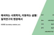 (포탈뉴스통신) 경상국립대학교 사회과학연구원 사회적 치유연구센터(센터장 김명희 사회학과 교수)는 12월 17일 오후 4시 가좌캠퍼스 사회과학관 글로벌룸(151동 310호)에서 대구대학교 사회학과 이희영 교수를 초청하여 ‘해석하는 사회학자, 이동하는 삶들: 질적연구의 현장에서’라는 주제로 특강을 개최한다. 이희영 교수는 《경계를 횡단하는 여성들: 분단과 이주의 생애사 연구》(2022) 등의 저술을 통해 생애사연구방법론을 한국 학계에 소개하고 발전시키는 데 크게 기여해 왔다. 경상국립대학교 대학원 사회학과와 공동 주최하는 이번 특강에서는 대구대학교 사회학과 장례식을 거치며 길어올린 사회학적 통찰과 일상의 다양한 경계를 넘나들며 사회의 역사와 문화를 해석하는 질적 연구 현장에서 느끼는 연구자의 고충에 대한 허심한 소회를 청중들과 함께 나눌 예정이다. 사회과학연구원에 사전 신청하여 참여할 수 있으며, 초청 특강의 개요는 다음과 같다. “현실의 경험은 해석된 것이고, 재해석의 대상이다. 연구자는 다양한 경로로 현실의 변화를 추적하고 의미를 재구성한다. 쉼 없이 재구축되는 ‘거미집’과도 같은 현실은 언제나 학